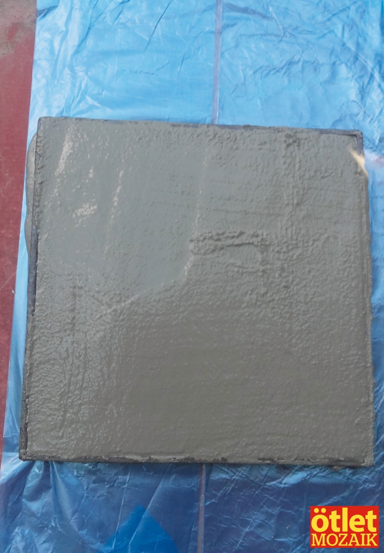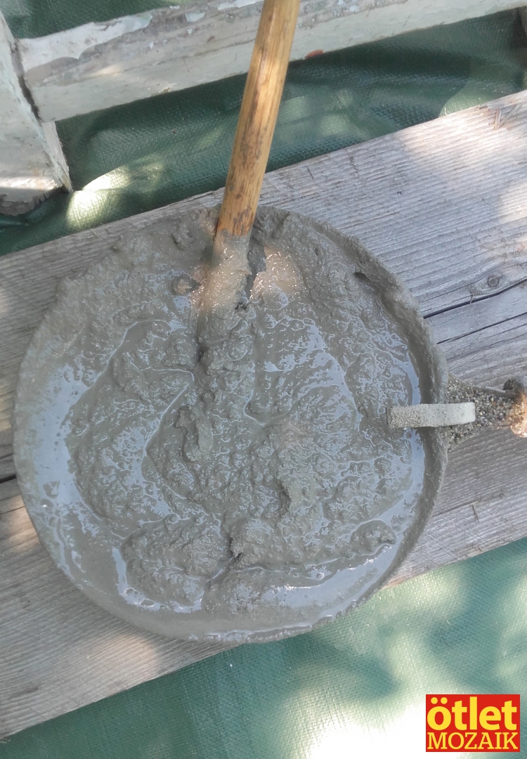 Mivel egy négyzet elkészítése akár három órát is igénybe vehet, ezalatt a beton szépen meghúz és levehető róla a fémsablon. Tímea két napig nem mozgatja, utána körömkefével letisztítja a nem oda való betont és kész is. Egy mozaikkép hónapokig, sőt évekig is készülhet.